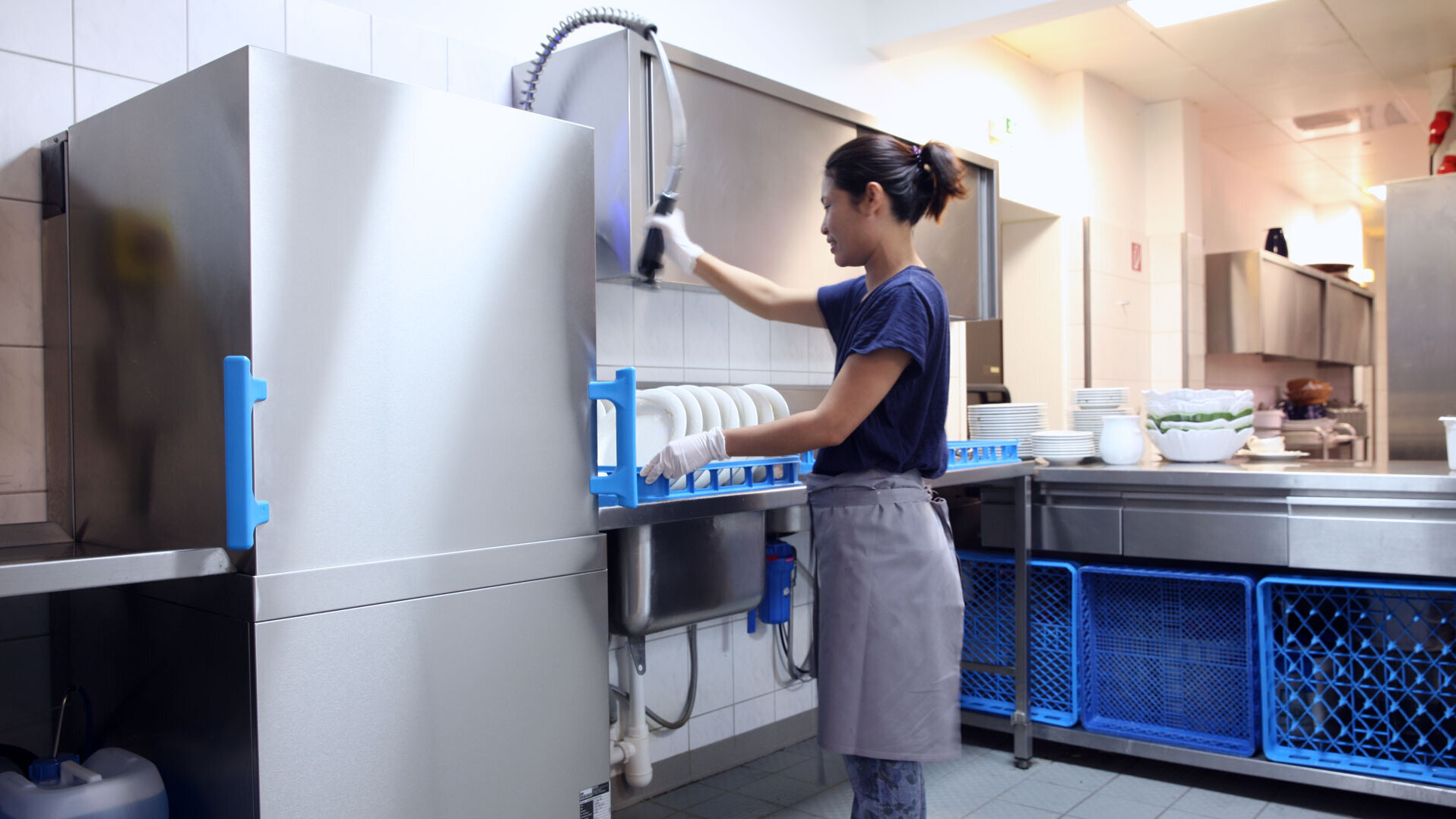 The indoor climate in a large-scale kitchen has a significant impact on the kitchen's ergonomics. ‘If the temperature in the kitchen increases to 28°C, productivity drops to 70 %. At 33°C, it drops even further, to 50 %,’ calculates ergonomics expert Professor Peter Schwarz. The humidity in your food-service kitchen also plays a large role. It is therefore also important for commercial dishwashing machines to release as little steam as possible into the room when their cycle is finished.