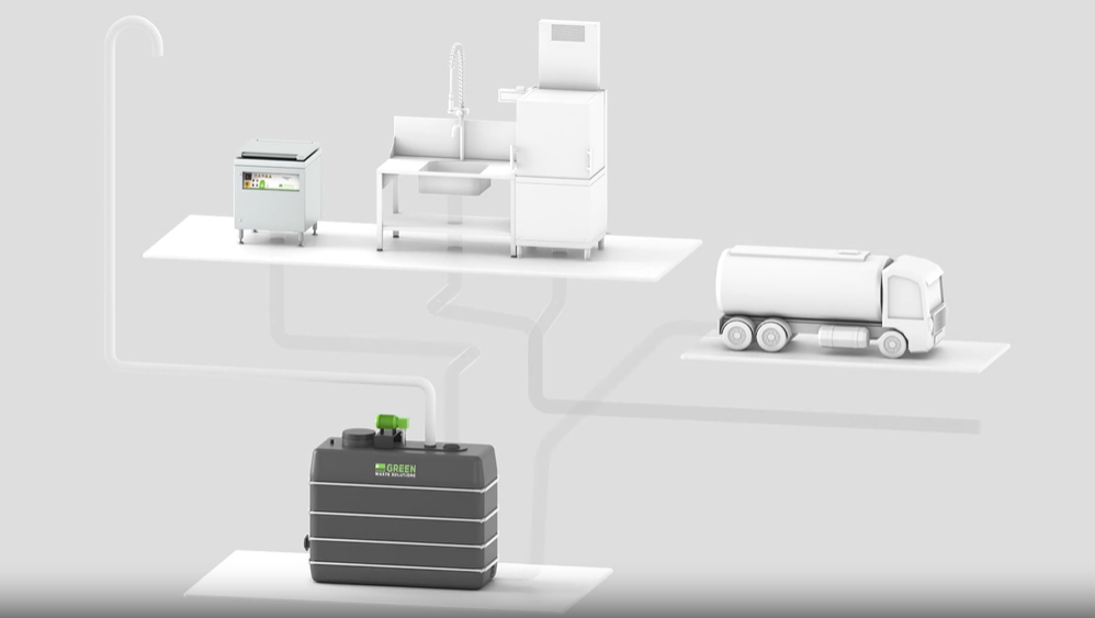 Our pumped waste systems use a process of homogenisation to convert kitchen scraps and leftovers into a liquid biomass before it even leaves the infeed station. The biomass is then pumped through a sealed system of plastic piping into a storage tank. It is then held in the tank without releasing any odours until a tanker arrives to transport it to a biogas plant. Based on tried-and-tested technology, our pumped waste systems offer a flexible and easy-to-install solution. And we've even made it easy to incorporate grease traps, so you can combine everything in one system.