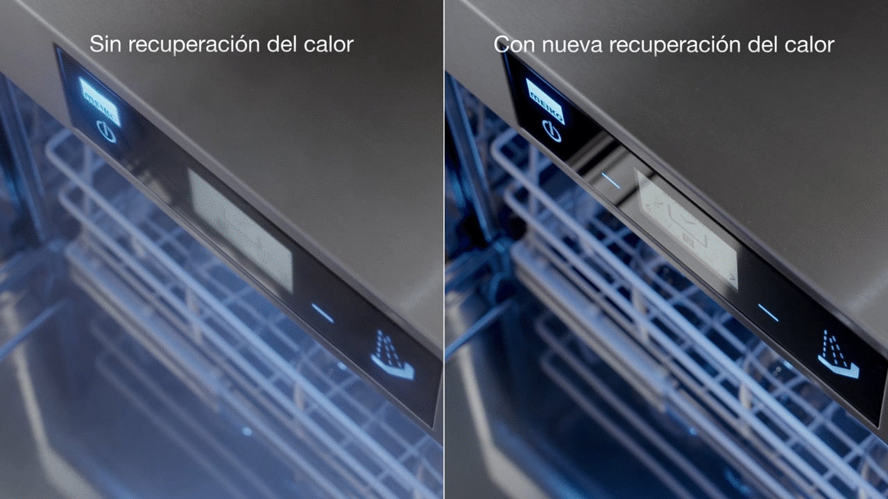 Con este tipo de recuperación del calor, una gran superficie de acero inoxidable en combinación con el agua limpia fría suministrada garantiza que las paredes de la máquina del M-iClean U se enfríen de forma ideal.