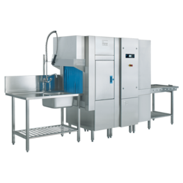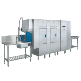 El KA-86 de MEIKO tiene la increíble capacidad de adaptarse a los procesos que necesite. Los platos, vasos, cacerolas, bandejas de horno y cubiertos tienen cada uno sus propios requisitos de proceso de lavado específicos, y este lavavajillas es capaz de obtener buenos resultados en todos ellos. El bajo consumo de agua de 0.92 litros (0.24 galones) por cesta mantiene una capacidad máxima de 355 cestas/hora. Las tres velocidades de transporte permiten adaptarse con eficacia a los distintos niveles de suciedad para obtener la limpieza que necesita.