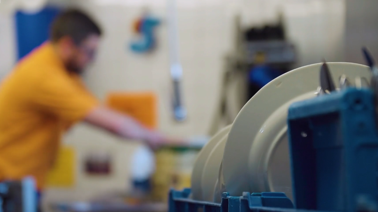 Fünf Stunden am Tag ist sie in Betrieb und reinigt in nur kurzer Zeit Tausende von Geschirr- und Besteckteilen.