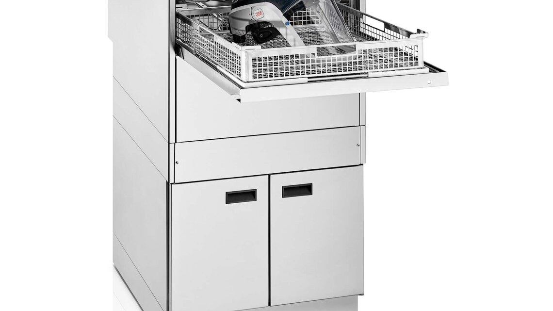 Durch die Haubenautomatik per Knopfdruck ermöglicht TopClean H ein sehr schonendes, hebefreies – also ergonomisches – Bestücken und bietet planerisch die herausragende Möglichkeit der Schwarz-Weiß-Trennung durch das Gerät selbst. Als Planungsexperte für Atemschutzwerkstätten sorgt MEIKO so für eine einfachere Schwarz-Weiß-Trennung bei optimierter Ergonomie und Benutzerfreundlichkeit.