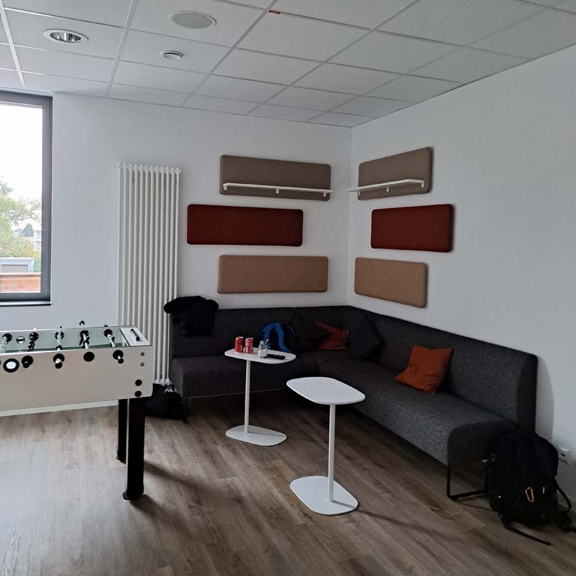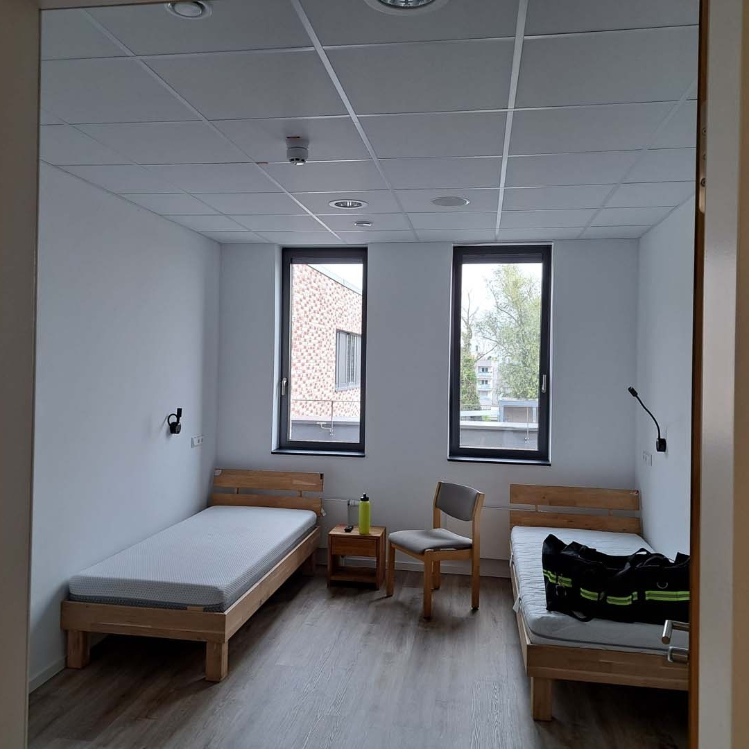 Der Bau bietet in der oberen Etage Platz für Gemeinschaft, Lernen und Rehabilitation. Hier sind eine voll ausgestattete Küche sowie moderne Schulungsräume, Büros, Ruhe- und Gemeinschaftsräume untergebracht. Von dort gelangt das Personal bei Alarm über Treppenhaus und Rutschstangen schnell zu den Einsatzfahrzeugen ins Erdgeschoss.