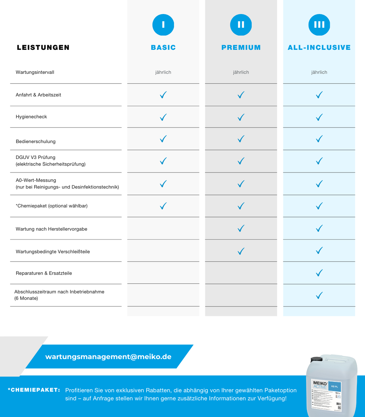 Bei MEIKO steht der Kunde im Mittelpunkt – wir hören zu, finden Lösungen und handeln proaktiv. Unser umfassender Wartungsservice sorgt dafür, dass Ihre Geräte stets optimal laufen. Durch regelmäßige Wartung, die wir gemäß der Herstellerempfehlung einmal jährlich durchführen, reduzieren wir Ausfälle und verlängern die Lebensdauer Ihrer Maschinen. Vertrauen Sie auf unseren Rundum-Service für maximale Leistung und Verfügbarkeit Ihrer Geräte.