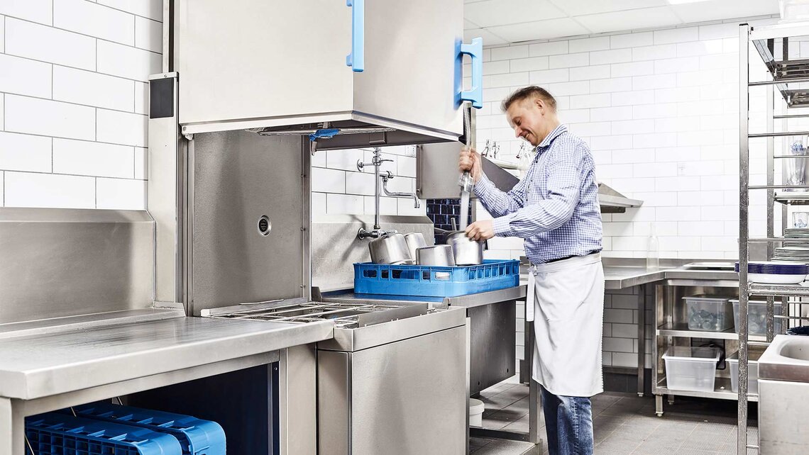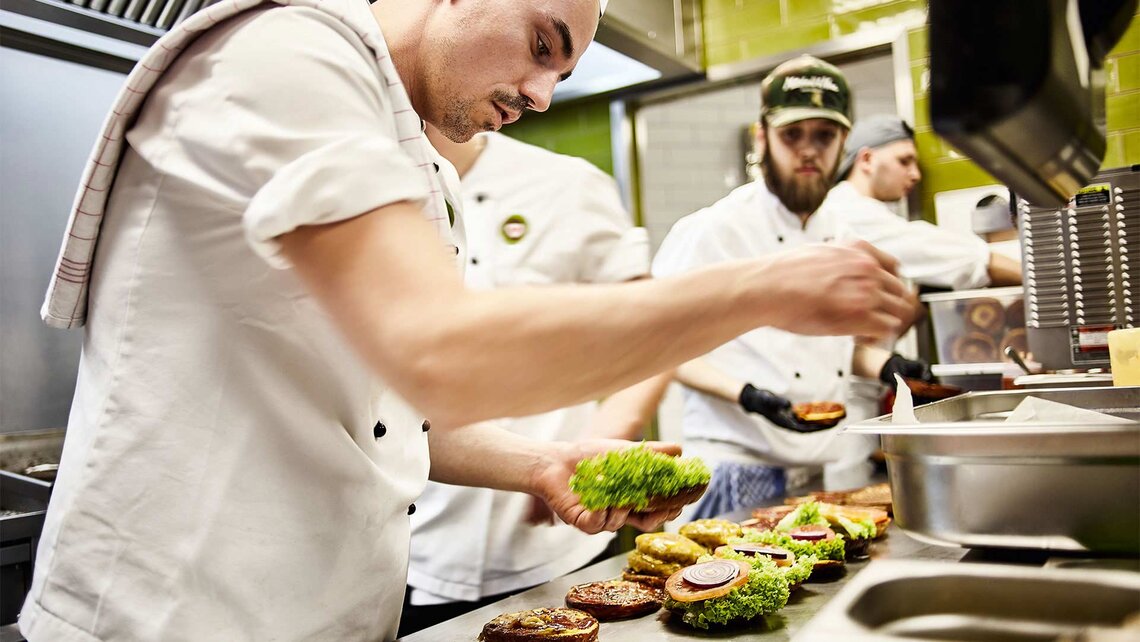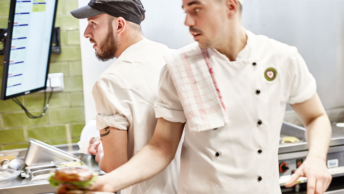 „Für mich bietet MEIKO hier die intelligentesten Lösungen“, so Sven Freystatzky, einer der Gründer und Geschäftsführer. Und eine Spültechnik, die sich leicht bedienen lässt. Für mehr Anwender- und damit Hygienesicherheit. Dafür sorgen in dem mittlerweile dritten Restaurant der Burgerkette zwei M-iClean U Untertischspülmaschinen und eine M-iClean H Haubenspülmaschine von MEIKO. Gerade Letztere überzeugt durch leichtere, ergonomische Bewegungsabläufe dank der integrierten Haubenautomatik. Ein sanftes Antippen genügt und die Haube der M-iClean H fährt herunter.