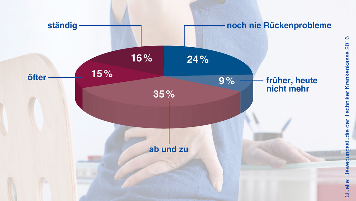 Ob verspannter Nacken, Hexenschuss, Bandscheibenvorfall oder aus Rückenschmerzen resultierende Migräne: Fast jeder dritte Erwachsene in Deutschland leidet nach eigener Aussage ständig bis regelmäßig an Beschwerden, die direkt oder indirekt mit Rückenschmerzen zusammenhängen. Nur ein Viertel der Bundesbürger gab laut Studie an, noch nie Rückenschmerzen gehabt zu haben. Damit zählen Rückenleiden zu den häufigsten und kostenintensivsten Krankheiten in Deutschland. Laut TK rangierten Rückenschmerzen 2016 bei den Hauptursachen von Krankmeldungen auf Platz 2 – gleich hinter Atemwegsinfekten (Grippe & Co.), die statistisch gesehen jeden berufstätigen einen Tag im Jahr außer Gefecht setzen. Viele reden daher bereits von der Volkskrankheit Rückenschmerzen.