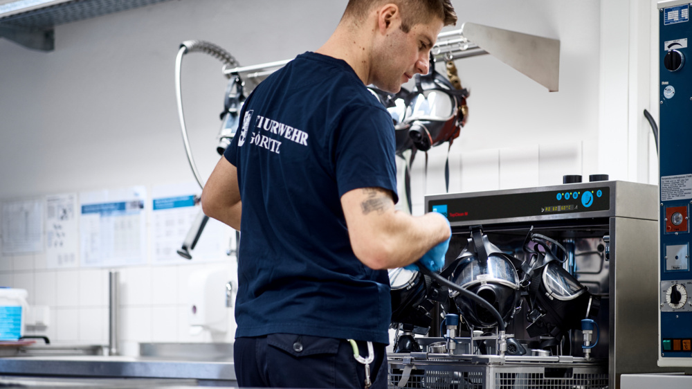 - Bild 6: Atemschutzgerätewart in Atemschutzwerkstatt ausgestattet mit Meiko-Technik