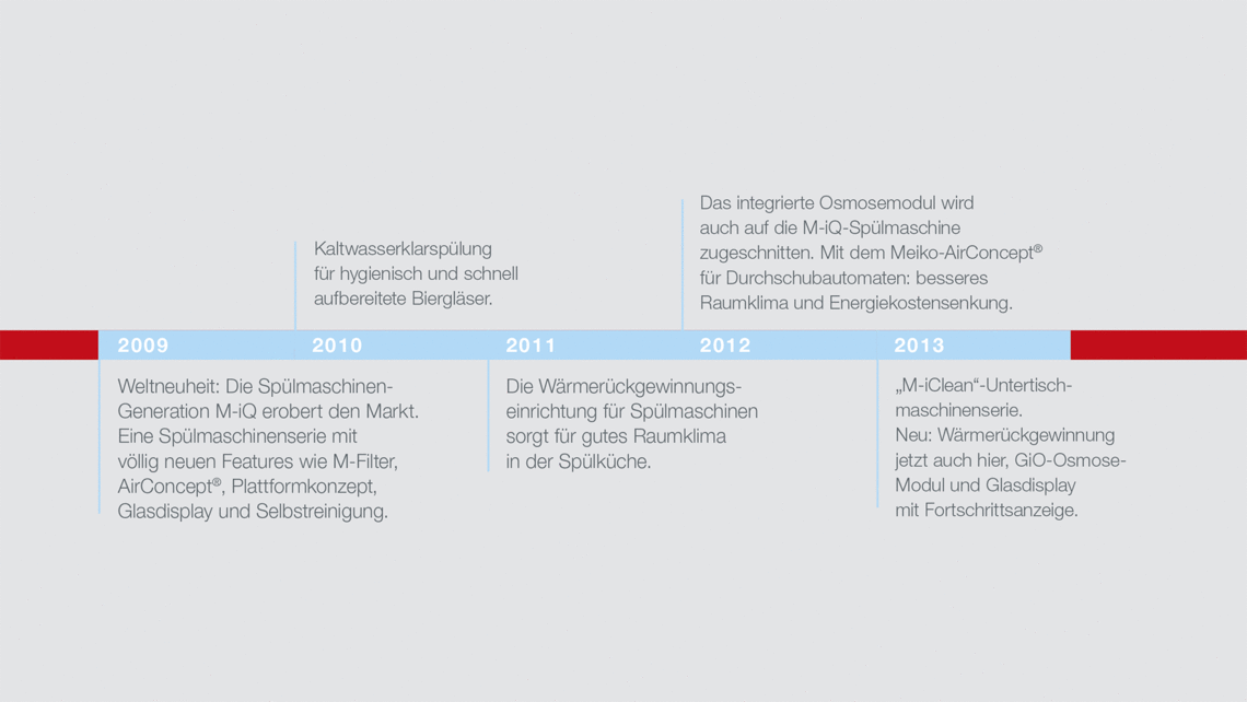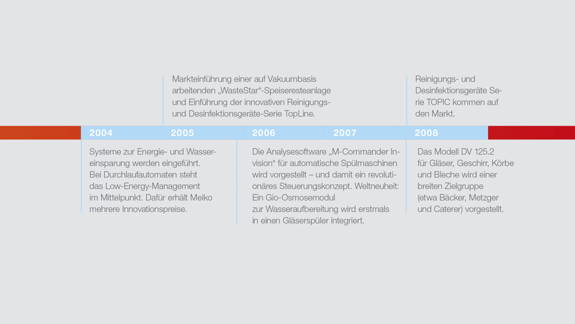 Von der Gründung an, seit 1927, prägt MEIKO die technologische Entwicklung moderner Profi-Spülmaschinen, Reinigungs-und Desinfektionsgeräten und der Technik zum Sammeln, Verwerten und Lagern von Nassmüll. Neben der Technik schreibt MEIKO auch mit seiner Entwicklung hin zum Global Player für Sauberkeit eine einzigartige Erfolgsstory. Lesen Sie hier!