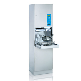 Hygiene-Konzept im Kompakt-Format: Das Standmodell ist schnell aufgestellt und im Handumdrehen einsatzbereit. Auch dieses Modell weist ein hohes Maß an Flexibilität auf, dank eines multifunktionalen Gefäßehalter-Konzepts. Top-Technik mit einer soliden Verarbeitung aus rostfreiem Edelstahl.