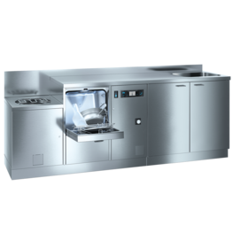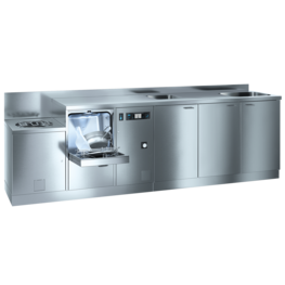 Diese Pflegekombination wartet nicht nur mit modernster Reinigungs- und Desinfektionstechnik von MEIKO auf. In Zusammenspiel mit dem Ausguss ohne Spülrand, einem groß dimensionierten Einweichbecken und einem Handwaschbecken werden sämtliche Anforderungen in puncto Hygiene erfüllt. Dank großer Arbeits- und Abstellfläche und viel Stauraum im Schrank findet hier alles seinen Platz.