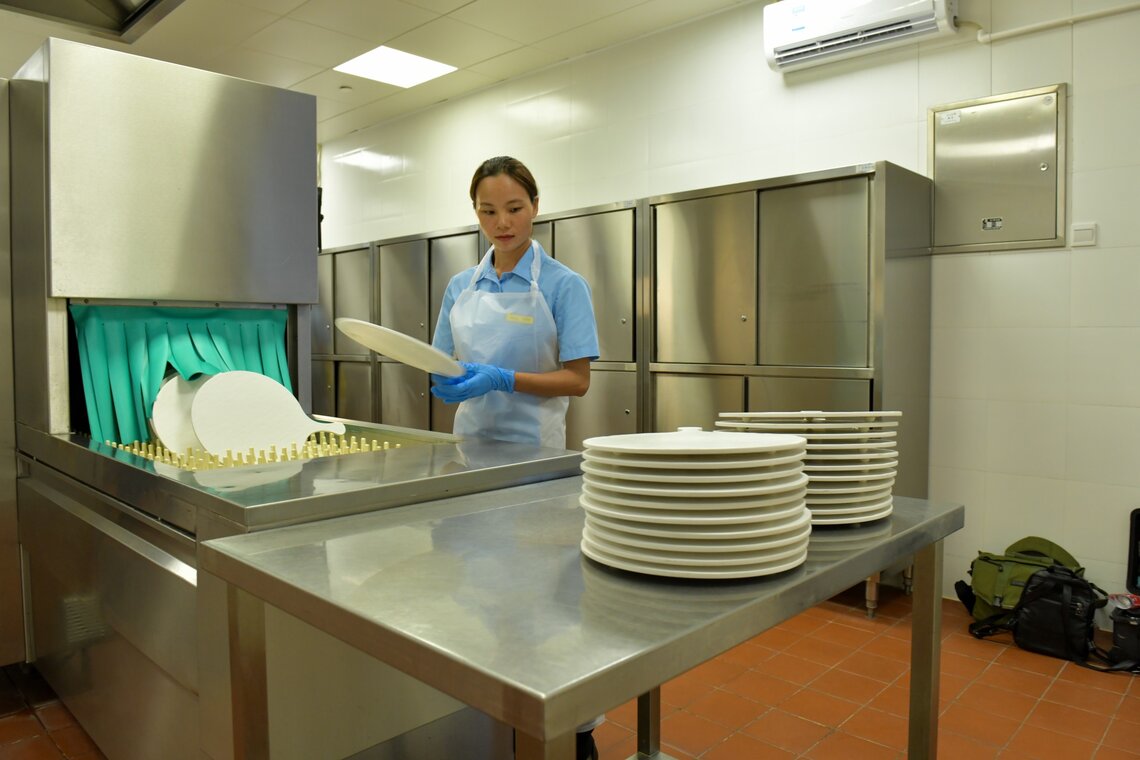 For the coronavirus, increased hygiene requirements and measures are in force not only for the warewashing technology but also for the warewashing personnel. The World Health Organization (WHO) has put hand hygiene at the top of its agenda. It recommends washing hands regularly and thoroughly with soap or alcohol-based products. Additional hygiene rules apply for professional warewashing personnel, such as wearing special work clothes and gloves when handling dishes, cutlery, trays and other items that have been used and could therefore be contaminated.