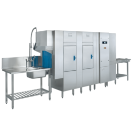 More mechanical action means better results—wares washed in the KA-100 are no match for its ultimate cleaning power. Absolute cleanliness and safety are balanced with water and energy conservation. The 36ʺ pre-wash tank and two heated wash tanks easily cleans up to 355 racks per hour, but its sustainable design is guaranteed to save you big on labor, water, energy and chemicals.