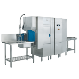 What's the secret to faster, cleaner results? In the UPster K-M 250 rack type dishwashing machine it's a pre-wash zone which allows it to handle considerably more racks per hour. An extra large passing height makes it easy to clean large trays and pots. The speedy solution for outstanding results.