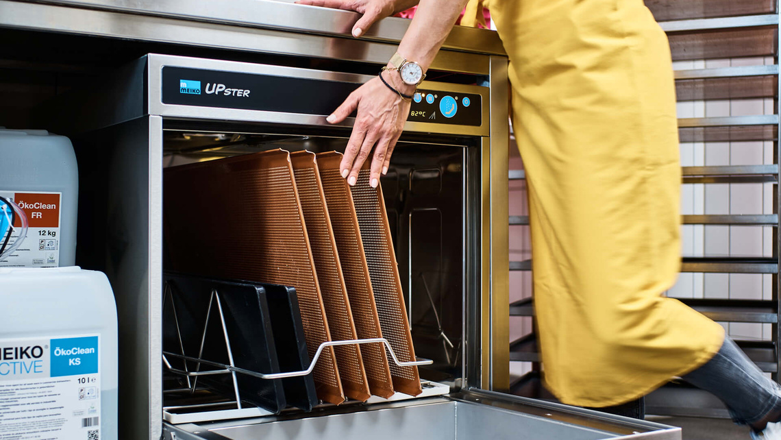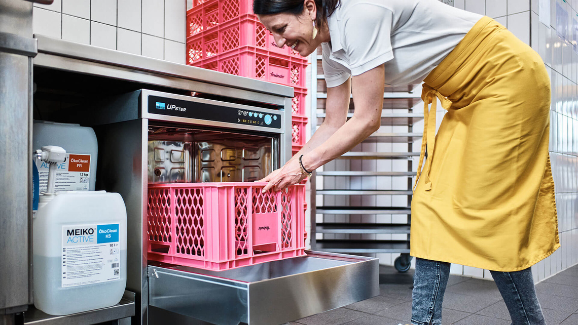 MEIKO’s New UPster U 500 XD undercounter dishwasher washes everything from delicate glassware to crockery, serving dishes, trays, reusable food delivery crates and baking trays, which can be washed stacked next to one another.