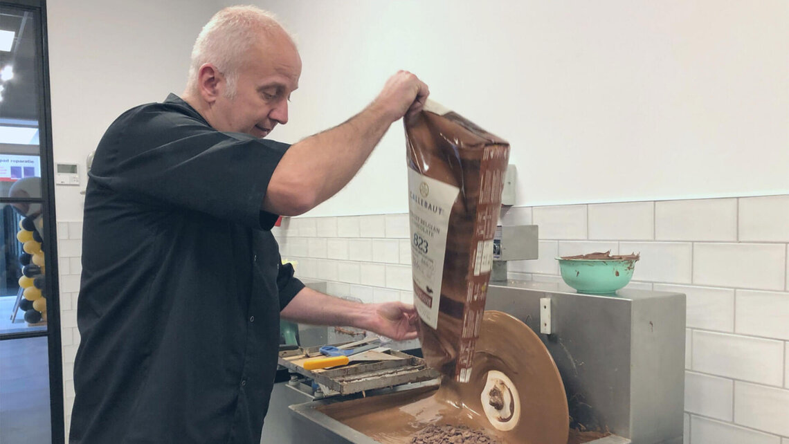 Erik works with the best chocolate, from Callebaut in Belgium. This producer, the largest in the world, makes more than 500 types of quality chocolate. Before you can process the chocolate, you need to temper or pre-crystallise it. "Simply melting the chocolate isn't good enough, as this takes a long time to harden. What's more, this way it doesn't get that lovely shine. You get the best product by bringing the chocolate up to the right temperature (32 degrees) and adding a special ingredient," says Erik on the eve of the busiest period of the year, Sinterklaas. "There are times throughout the year when people want to give each other chocolates as gifts. Valentine's Day, Easter, Secretaries Day, Christmas, anniversaries, birthdays. And, during these periods, a lot of moulds and shapes are required. We now have about 400 of them".