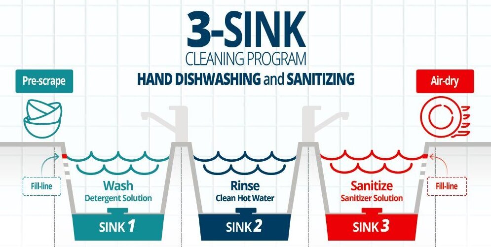 And of course, we cannot ignore the hard facts of “manual dishwashing” – many restaurants still resort to the “3-sink method” of manual dishwashing.