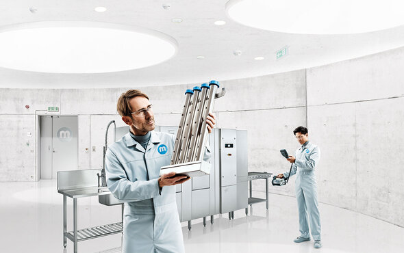 In order to improve the efficiency of your commercial kitchen equipment, cleaning is necessary so that your kitchen can function on a stable utility supply. With MEIKO's dishwashing machine, water treatment process is possible with water softening and GiO Module.