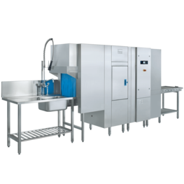 What's the secret to faster, cleaner results? In the UPster K-M 250 rack type dishwashing machine it's a pre-wash zone which allows it to handle considerably more racks per hour. An extra large passing height makes it easy to clean large trays and pots. The speedy solution for outstanding results.