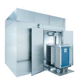 MEIKO’s frontloading trolley washing solution WS 125.2 is a compact walk-in chamber washing machine, for above floor installation or for installation in a pit. With a capacity of 45 gastronom tray trolleys per hour it combines a high level of effectiveness with a small footprint.