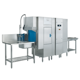 Gracias a un tanque de lavado adicional, el lavavajillas de transporte de cestas vuelve a aumentar la capacidad de lavado. Excelente rendimiento con un uso óptimo de las superficies. Gracias a la recuperación del calor, el vaho caliente no se libera de forma descontrolada en la sala, sino que se vuelve a conducir al circuito de agua, lo que ahorra energía.