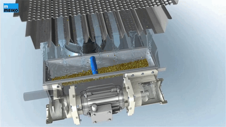 L'eau de lavage est conduite d'une cuve à l'autre – dans le sens inverse du lavage. Ainsi, l'eau traverse les différents filtres M-iQ et une évacuation des déchets s'opère en continu.