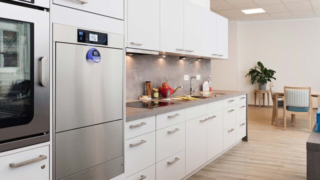 La M-iClean PF-S concentre la puissance et les avantages d’un lave-batterie haut de gamme sur moins de 1 m² de surface. Vous pourrez cependant y faire entrer votre vaisselle encombrante sans problème !