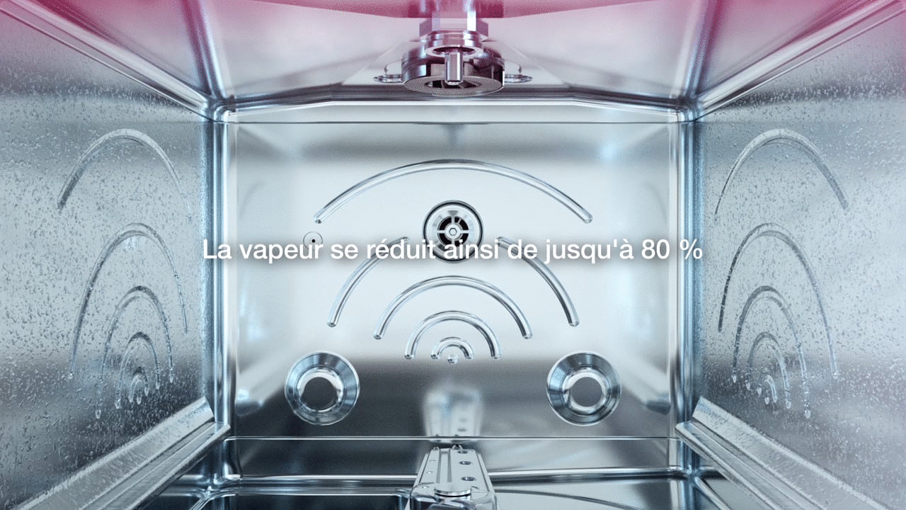 Ce système utilise la chaleur générée par le lavage pour préchauffer l'eau de rinçage tout en réduisant l'émission de buées. Les buées sont orientées sur les parois de la machines contre lesquelles sont placées des poches remplies d'eau du réseau provoquant un phénomène de condensation, réduisant ainsi l'émission de vapeur à l'ouverture de la porte. En parallèle, la chaleur des buées aura réchauffé l'eau se trouvant dans les poches lui permettant de gagner une vingtaine de degré avant d'être injectée dans le surchauffeur.