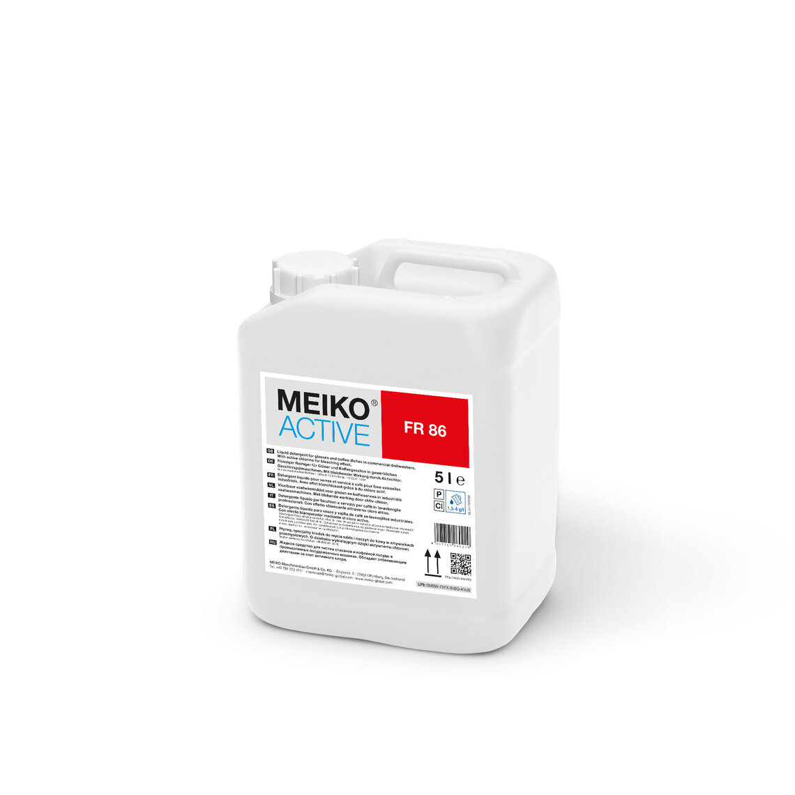 MEIKO ACTIVE FR 86 è un agente efficace che rimuove a fondo i residui di amido e proteine dalle stoviglie – anche dopo un'essiccazione prolungata. La forza pulente dei principi attivi ad alta efficacia assicura inoltre un'ottima capacità solvente dei grassi e dispone di buone proprietà candeggianti.