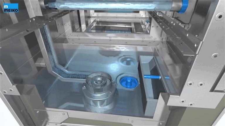 Un lavoro pulito inizia dall'alimentazione della macchina: i residui di cibo vengono eliminati automaticamente da un potente getto d'acqua. Come un'enorme cascata di acqua pura.