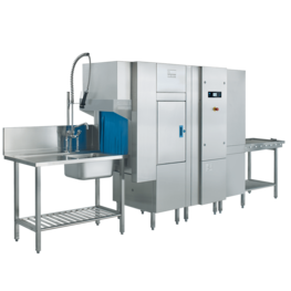 Con questa lavastoviglie a traino lo spazio disponibile viene sfruttato in modo ottimale. Nonostante le dimensioni compatte, la lavastoviglie a traino UPster K-S 160 smaltisce grandi carichi di stoviglie. Grazie al recupero di calore dall'aria esausta il clima in cucina rimane piacevole e i costi di esercizio contenuti. Un vero concentrato di potenza.