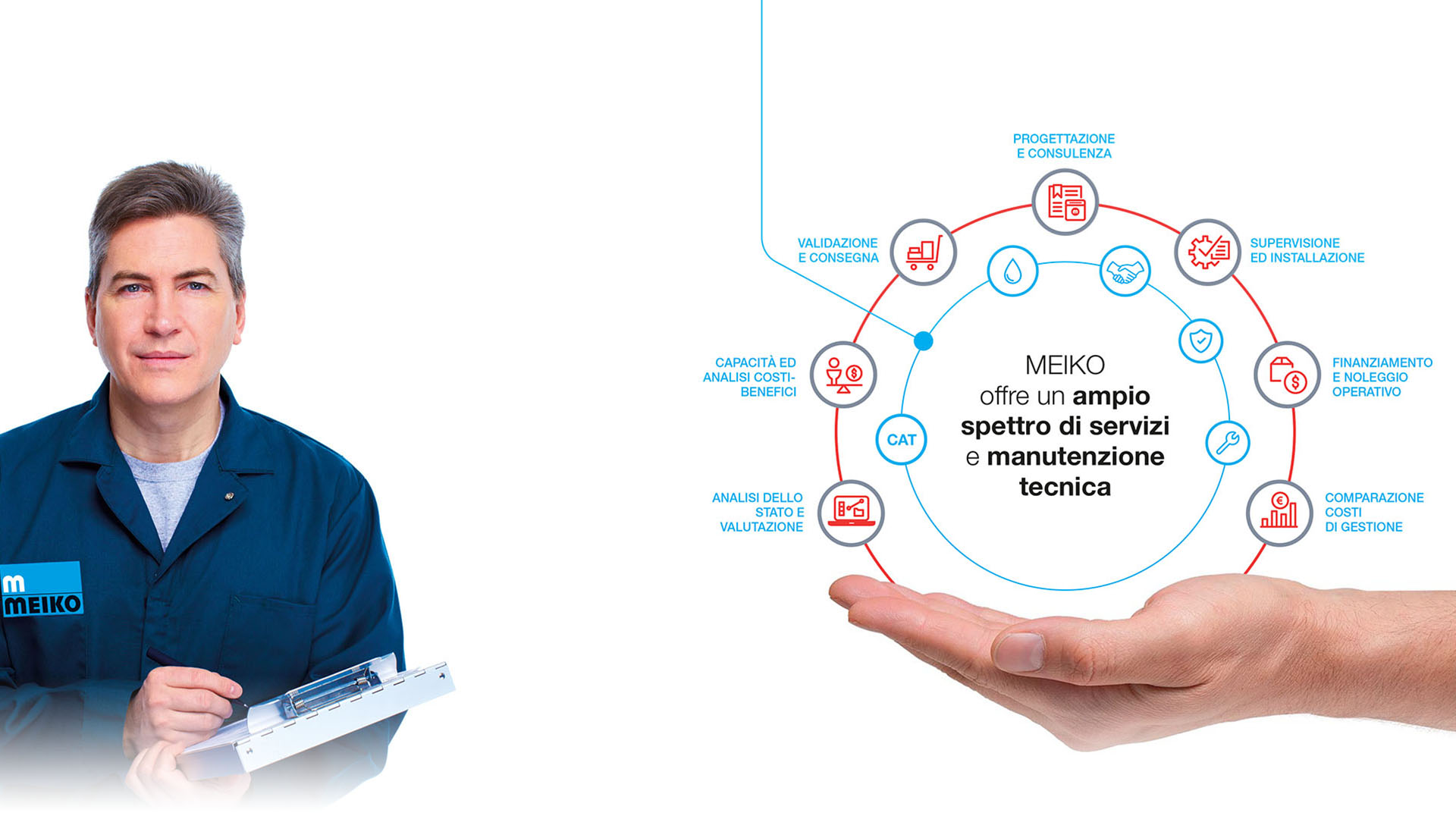 Le soluzioni di lavaggio MEIKO sono progettate e costruite per durare nel tempo. Infatti tutte le nostre macchine hanno una vita tecnica di gran lunga superiore ai 10 anni. Seguite secondo i programmi di “Manutenzione Ordinaria” MEIKO, soddisfano pienamente le esigenze di efficienza rispettando le normative DIN, in qualsiasi area di lavaggio.