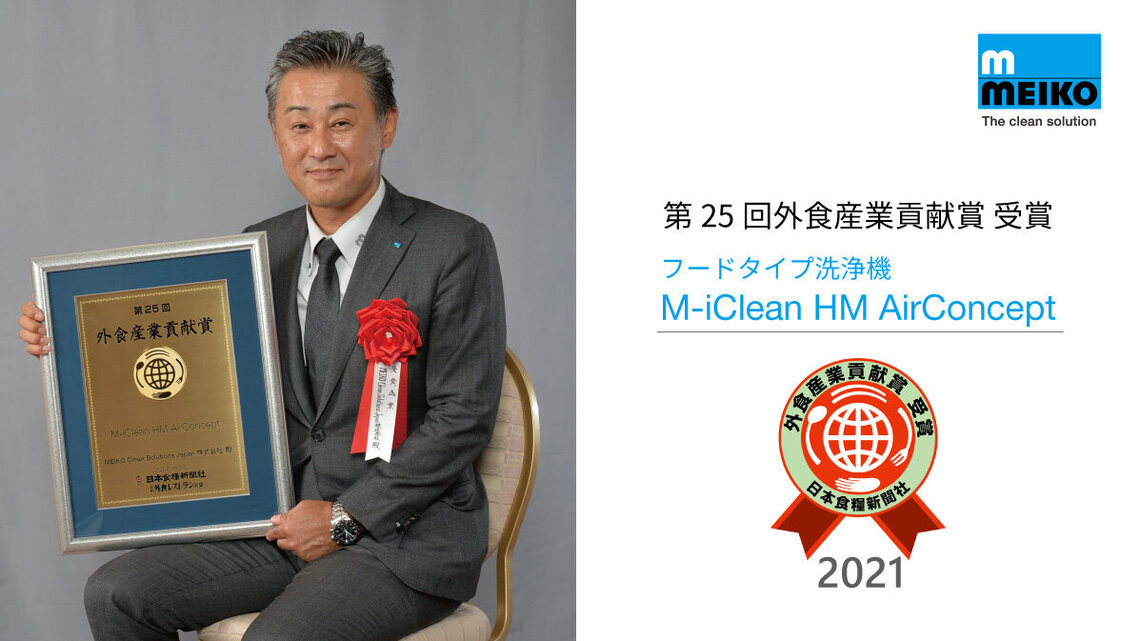 業務用加工食品ヒット賞および外食産業貢献賞は20社(商品・ブランド)、機械・素材賞は2部門8製品、地域食品産業貢献賞は7社に授与され、弊社よりフードタイプ食器洗浄機 M-iClean HM ComfortAir(マイクリーンエイチエムコンフォートエア)が外食産業貢献賞を授与頂きました。
