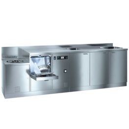 スロップシンクユニットは縁なし構造で、100%ステンレススチール製です。らせん状の高圧水流(ウォータージェット)で、スロップシンクユニット積み込みシュートの理想的なセルフクリーニング機能が実現しています。