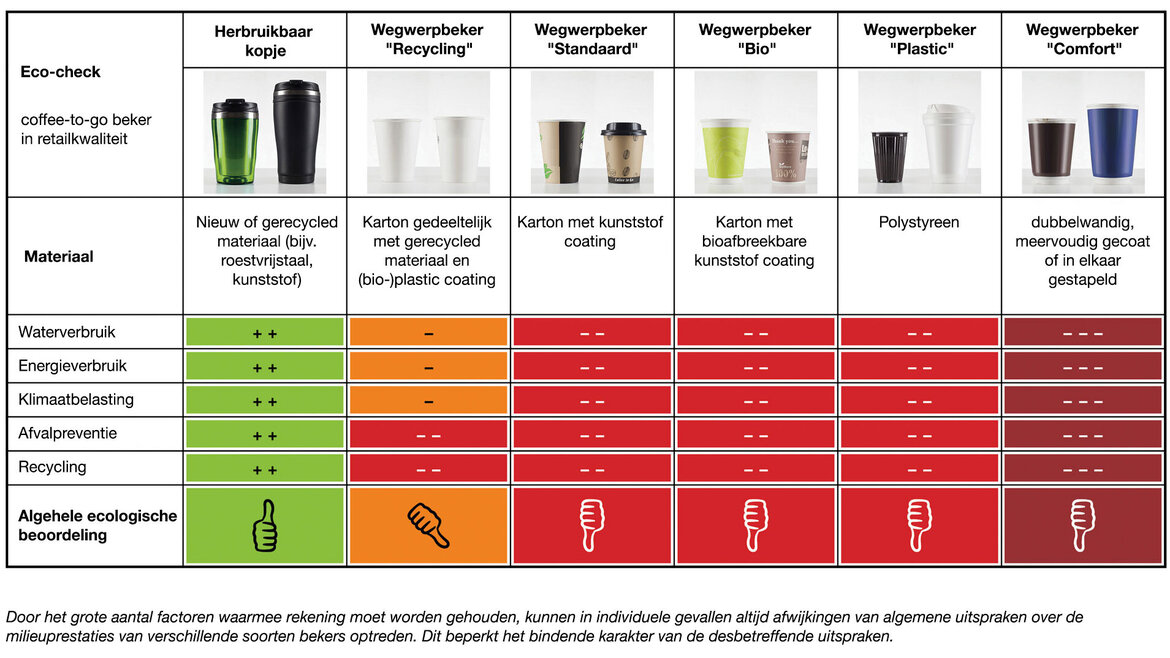 In Duitsland worden elk jaar 2,8 miljard wegwerpbekers gebruikt en weggegooid. Dat zijn 320.000 bekers per uur. Zo ontstaat alleen al door wegwerpbekers elk jaar ongeveer 40.000 ton afval - alleen in Duitsland! Achteloos weggegooide wegwerpbekers veroorzaken zes tot 17 procent van vervuilde oppervlakken en ruimtes in Duitse steden.