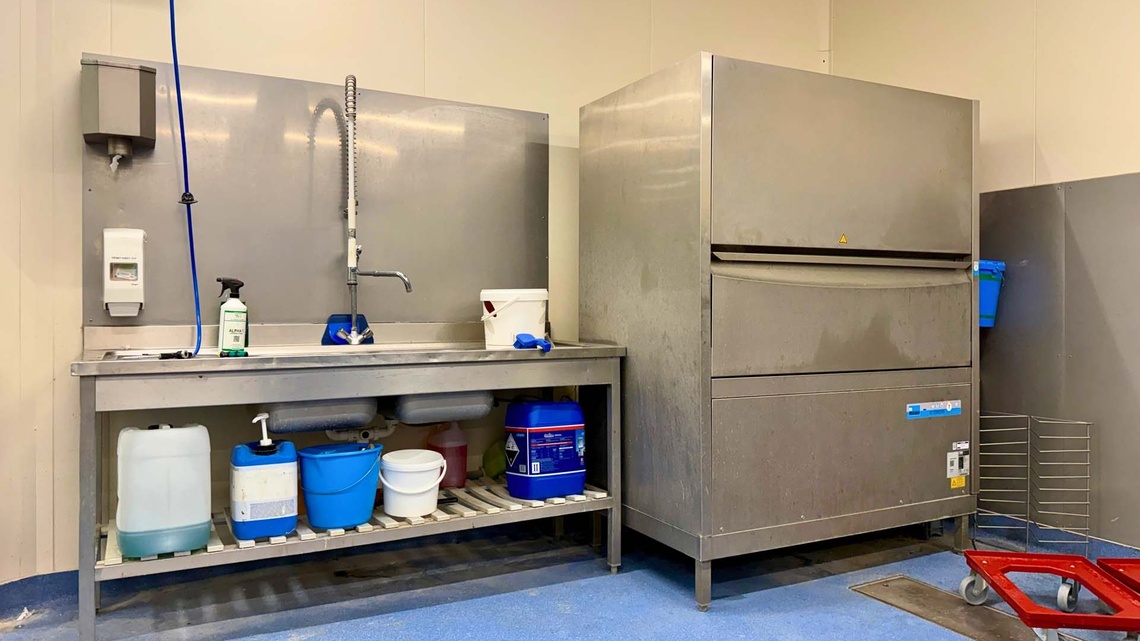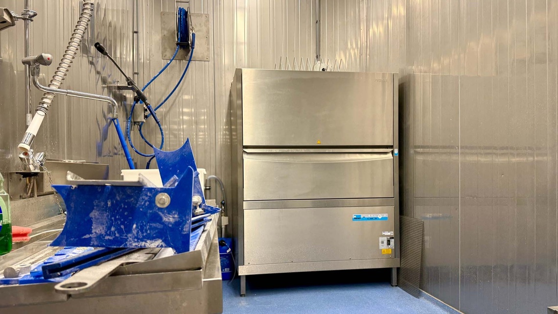 In zo’n test- en demonstratieomgeving wordt veel gewisseld. Tooling eruit, onderdelen schoon, volgende set erin en weer door. Dan is reiniging geen bijzaak, maar een schakel in het tempo. Daarom staan er in de demonstratiebakkerij twee gereedschappenwasmachines van MEIKO, type DV 270.2. Hiermee worden losse onderdelen van Rademaker machines gereinigd, zodat ze hygiënisch en direct weer inzetbaar zijn. Juist bij grotere, robuuste onderdelen is dat prettig: minder handmatig werk, een consistenter resultaat en minder vertraging tussen twee tests.