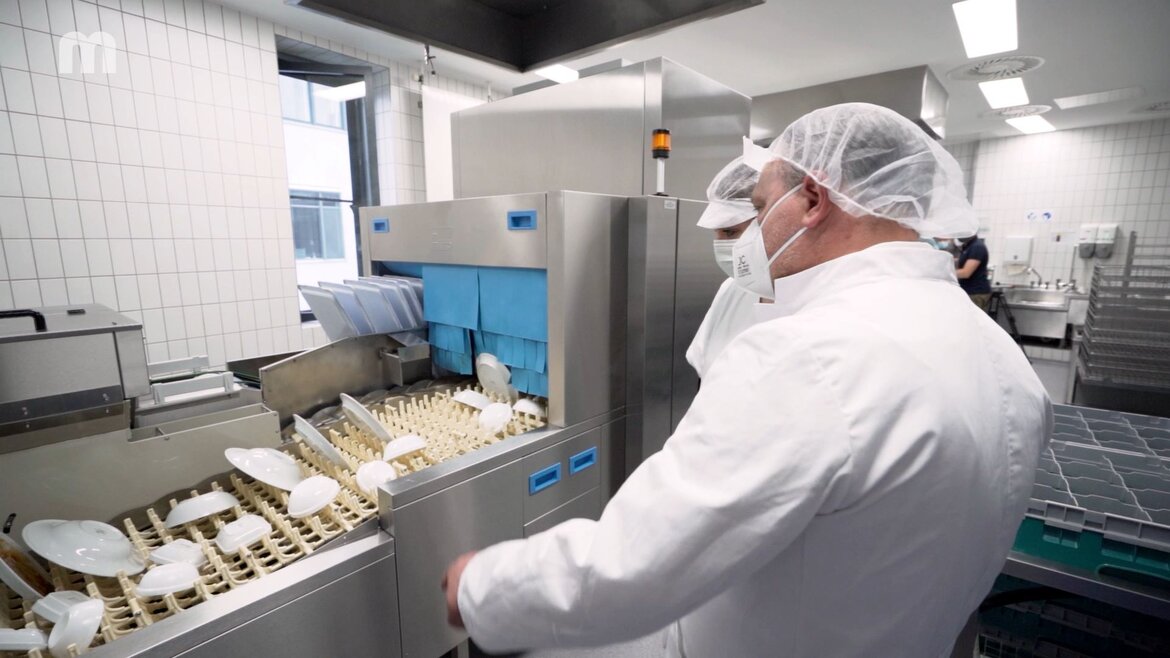 Er wordt wanhopig naar personeel gezocht. Ook in de spoelkeuken van het ziekenhuis in Erlangen. Daar komen dan ook nog eens krappe ruimtes en piekmomenten met veel vaatwerk bij.