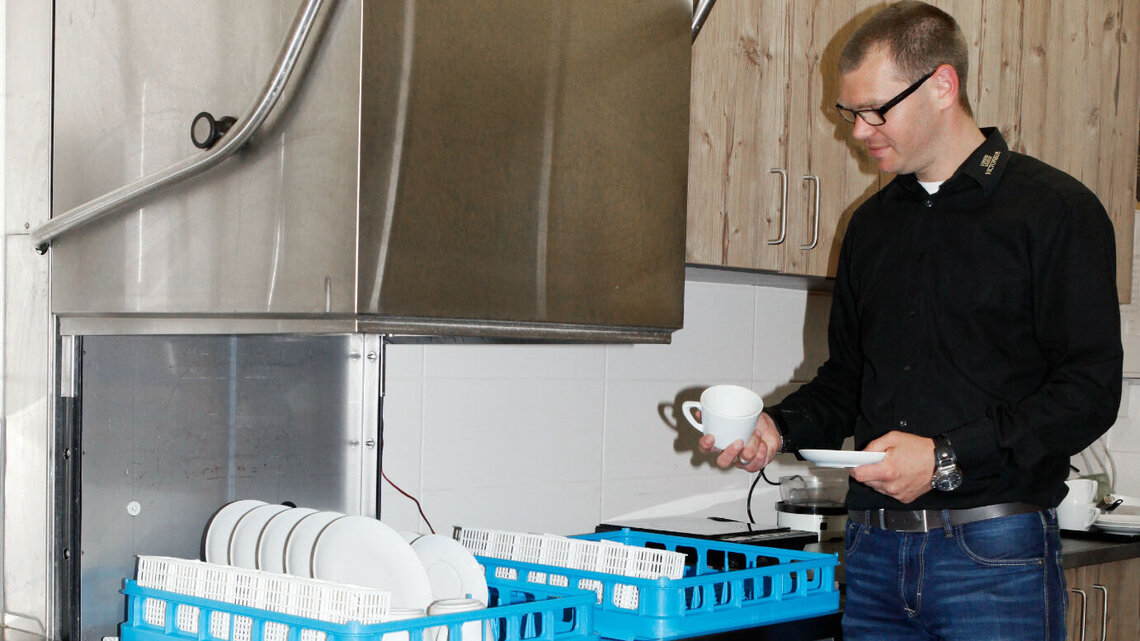 „Bij de kapspoelmachines wordt het spoelgoed in de rekken gesorteerd, doorgeschoven en is het al schoon. Dat gaat zeer snel, binnen vier minuten kan het gereinigde vaatwerk al weer naar de gast“. Bestek, koffiekopjes, Latte Macciato-glazen met melkresten – alle delen verlaten de machine in een perfecte toestand. Alles loopt op rolletjes. We zijn zeer tevreden met de machines van MEIKO. Dat waren zeer goede beslissingen.