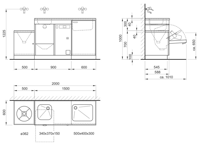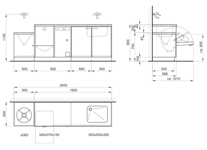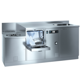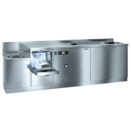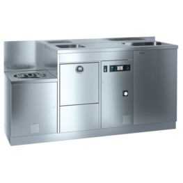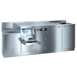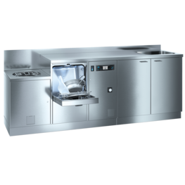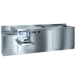 De eenheid met geïntegreerde uitstortunit en wastafel zorgt voor maximale hygiëne – en heeft maar weinig ruimte nodig. De hoogte van het werkblad wordt gebaseerd op ergonomische gezichtspunten, zodat een aangenaam werkgebied ontstaat dat ook goed is voor de gezondheid.