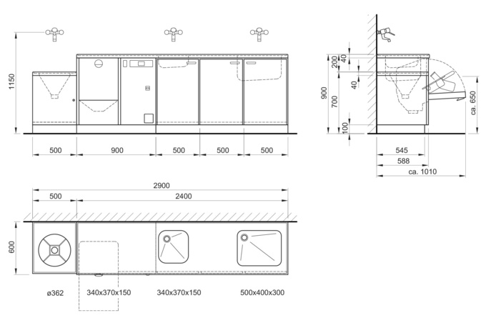 De eenheid met geïntegreerde uitstortunit en wasbak zorgt voor maximale hygiëne – en heeft maar weinig ruimte nodig. De hoogte van het werkblad wordt gebaseerd op ergonomische gezichtspunten, zodat een aangenaam werkgebied ontstaat dat ook goed is voor de gezondheid.
