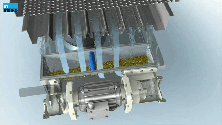 Gıda atıkları filtrelenir ve ardından ilave su gerekmeden tanktan atılarak yıkama prosesinden uzaklaştırılır.