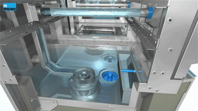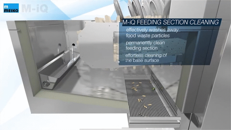 Hijyen, makinenin giriş bölümünde başlar: Gıda atıkları düzenli aralıklarla ve kuvvetli bir dalga hareketiyle otomatik olarak uzaklaştırılır. Aynı her şeyi temizleyen büyük bir şelale gibi!